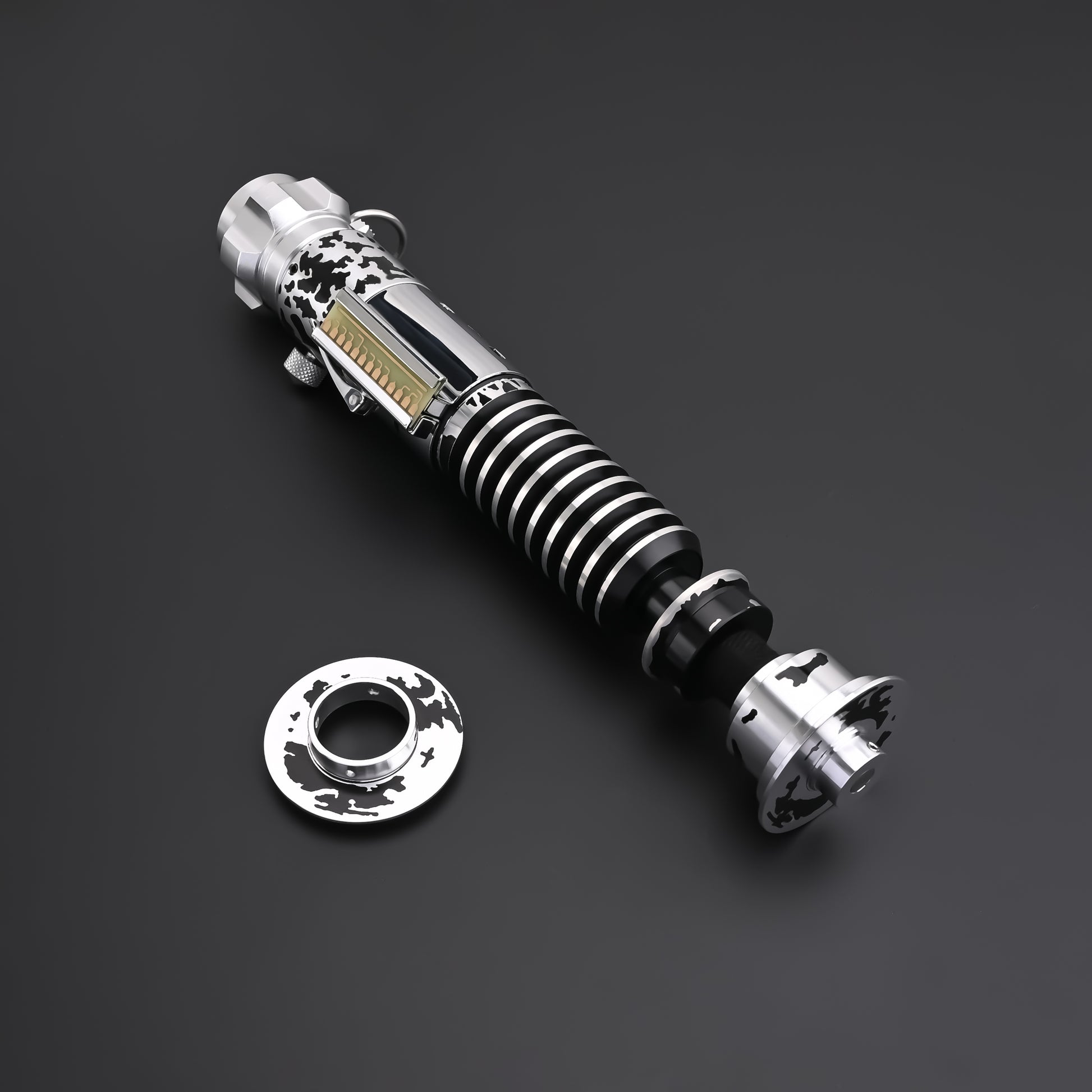 Feel free to choose to have your saber engraved in english or aurebesh up to 20 characters!! Perfect for customizing your saber or for a gift for a loved one! Engraving adds 1 week minimum extra time to delivery. After purchasing our team will reach out via email to learn what you would like to engrave and the location you would like it to be engraved on your saber.